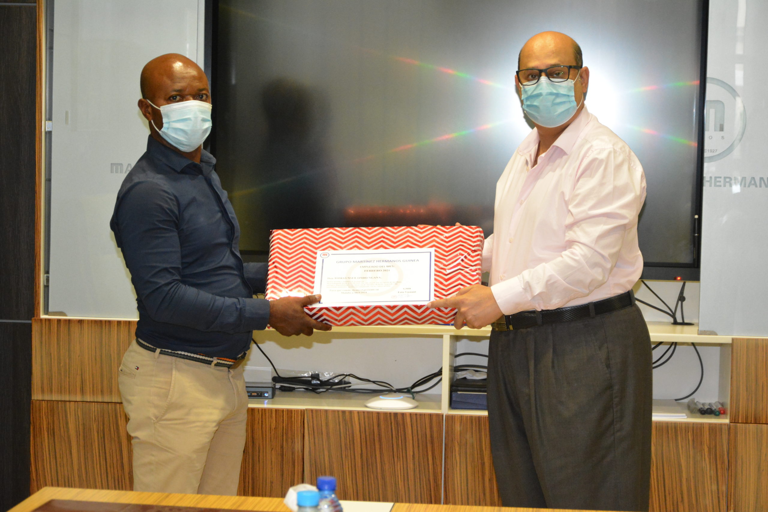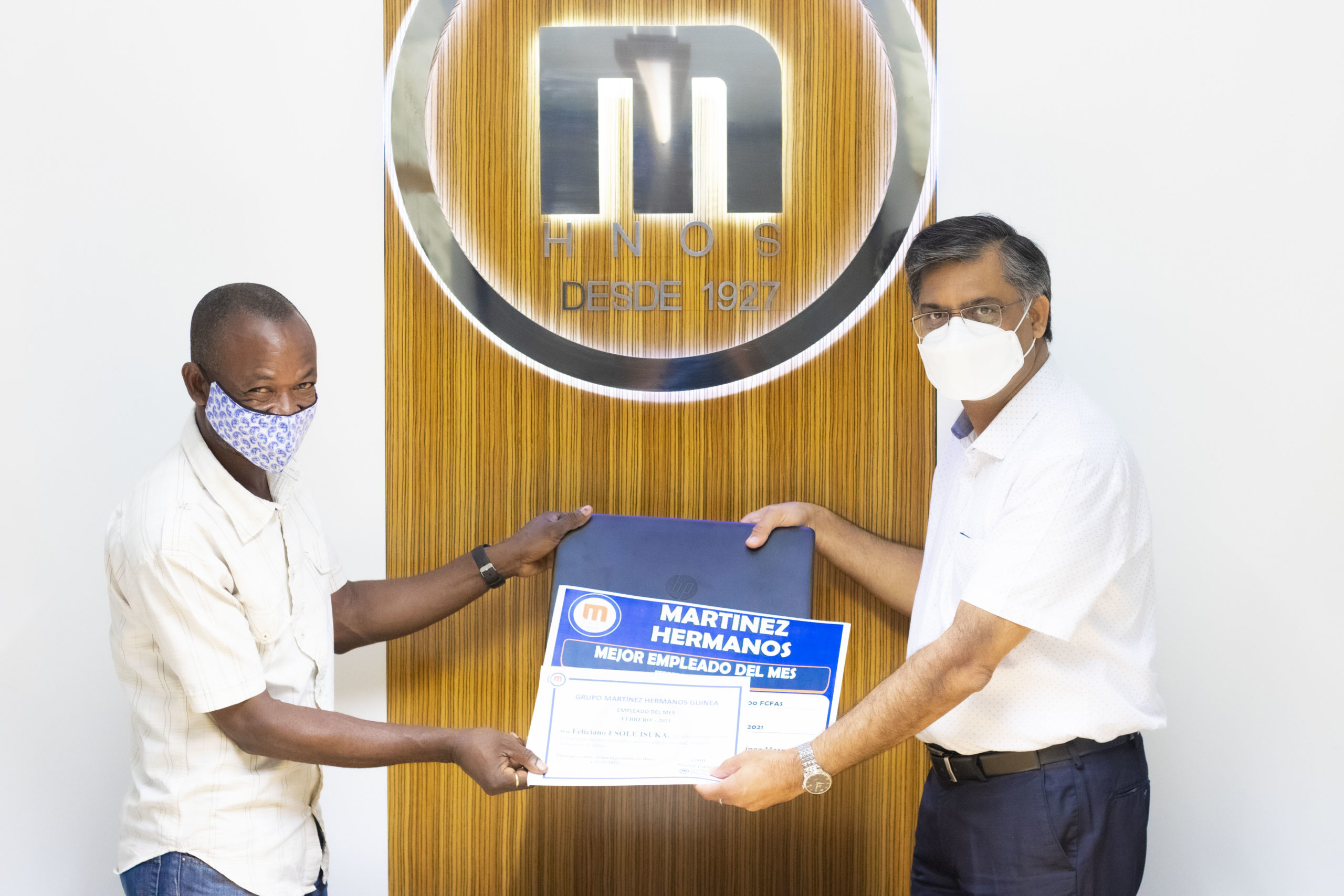 También tenemos que dar la enhorabuena a los empleados del mes en Bata, Tomás Alogo Edu, gestor logístico del área de Finanzas, por su labor y compromiso con nuestro Grupo, en el que lleva trabajando 16 años, y a Feliciano Esole Isuka, mecánico de Taller desde el año pasado.
